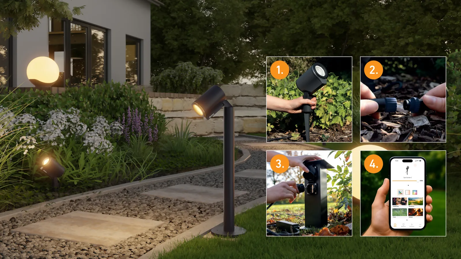 Éclairage élégant des chemins. Pour les allées, les parterres et les terrasses. -