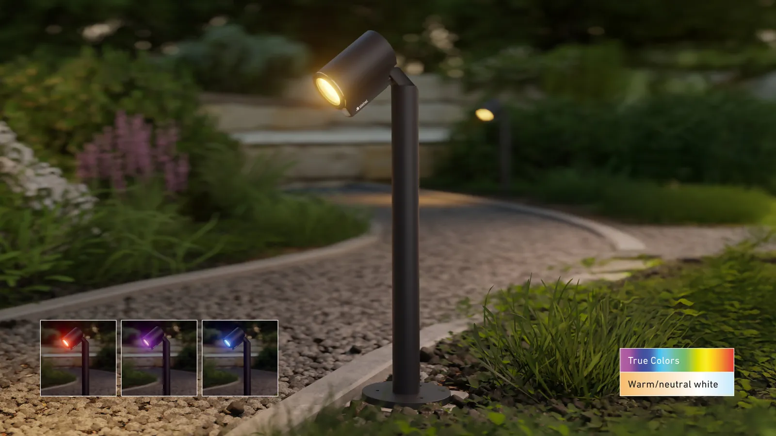 La solution parfaite pour un éclairage de chemin à la fois fonctionnel et d’ambiance autour de la maison. En tant que partie du système d’éclairage de jardin 24V, le projecteur sur pied et de chemin „Spot Way 24V“ séduit par son design moderne et épuré et fournit une lumière ciblée et agréable là où vous en avez besoin. Grâce au système Plug & Play, l’installation se fait en un clin d’œil. Que ce soit une lumière blanc chaud ou des accents colorés à la demande – les chemins de jardin sombres, les parterres ou les zones de terrasse sont éclairés de manière élégante et sûre (363 lm). Disponible en version „Spot Way C 24V“ avec capteur de luminosité, et en version „Spot Way SC 24V“ avec capteur infrarouge innovant (détection à 90°) et portée de 10 m. Tout est contrôlé et réglé de manière pratique via l’application STEINEL Connect – de la configuration des horaires et du crépuscule aux groupes de lumières et aux heures de marche/arrêt. Bloc d’alimentation non inclus.