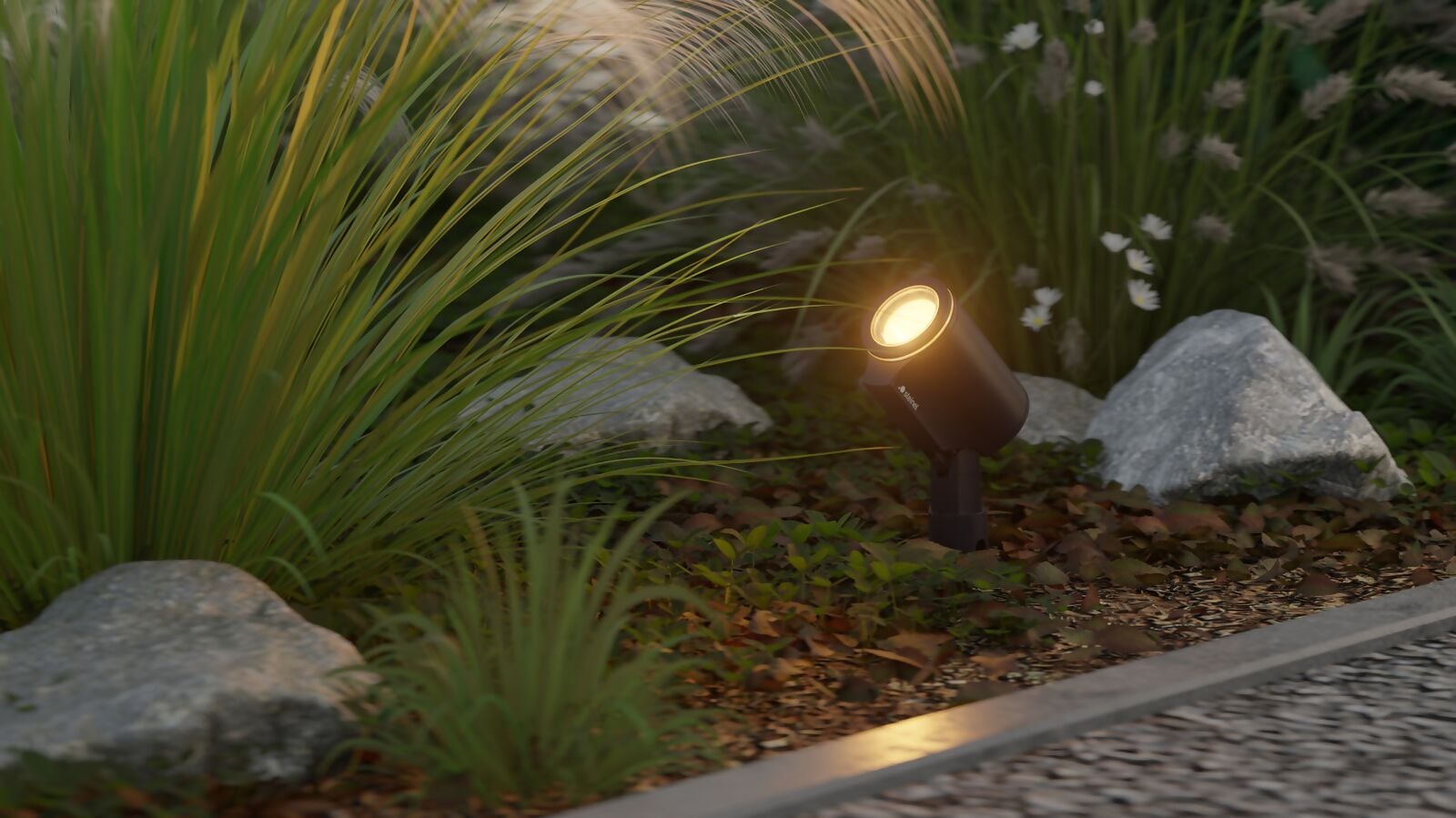 Your garden. Your light. Avec le système d'éclairage de jardin 24V, tu fais briller ton extérieur. Il suffit de connecter la lampe, le câble et le bloc d'alimentation et de les régler via l'app.